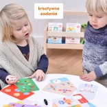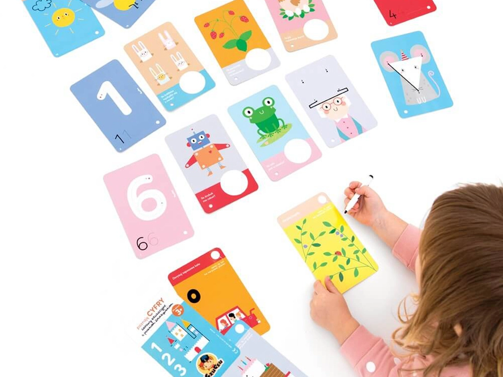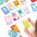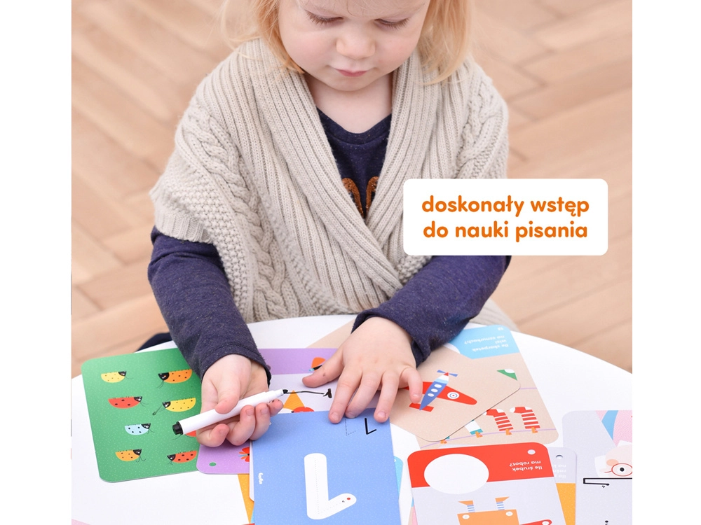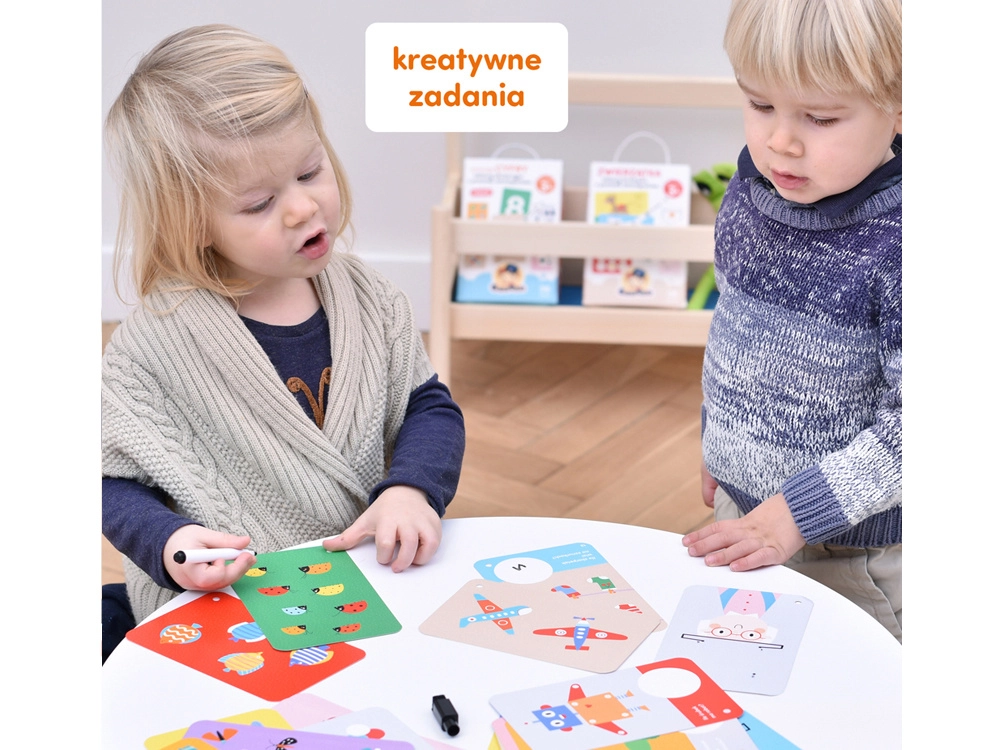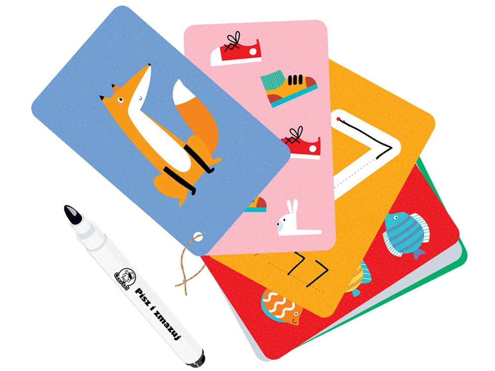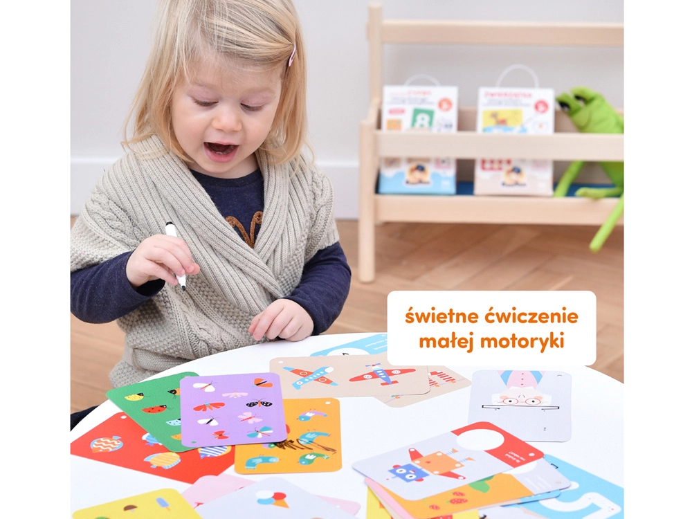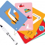 Le set comprend des illustrations colorées et pleines d’humour qui encouragent les enfants à des activités créatives. Les cartes permettent de dessiner et d’effacer à répétition, ce qui en fait un excellent cadeau éducatif pour les enfants d’âge préscolaire. Idéal aussi pour les voyages avec votre enfant.