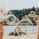 Jouer avec les bulles favorise le mouvement à l’air libre, développe la coordination et la précision (p. ex. avec des gants pour attraper les bulles) et constitue un excellent moyen de se détendre. Les bulles animent les anniversaires et événements d’entreprise et servent aussi d’élément ludique pour de simples expériences de physique.