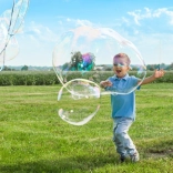 Le kit TUBAN combine une solution éprouvée pour grandes bulles et une corde pratique grâce auxquelles vous créerez facilement de gigantesques bulles et des effets de bulles spectaculaires. Il suffit de verser la solution dans un bol, d’imbiber la corde et, par un léger mouvement des mains, de former de longues surfaces de film qui se transforment en bulles scintillantes.