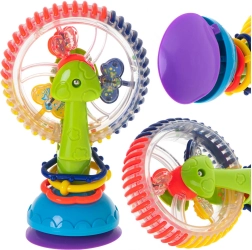 Ce jouet interactif pour bébés propose des éléments rotatifs, des billes à effet hochet et une ventouse puissante qui le maintient en place. Les couleurs vives et les parties tournantes attirent l’attention et soutiennent la concentration ainsi que la coordination œil-main.
