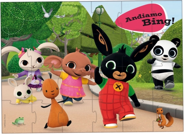 Le puzzle de sol à l’effigie du héros préféré BING ravira chaque enfant. Grâce à ses grandes pièces résistantes, il se construit parfaitement au sol et stimule la motricité fine, la concentration ainsi que la perception des formes et des couleurs.
