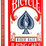 Cartes à jouer BICYCLE Rider Back Standard très appréciées, au design classique et au revêtement air-cushion pour un mélange fluide et une longue durée de vie. Disponibles en deux couleurs de dos (rouge ou bleu), envoyées aléatoirement. Prix pour 1 paquet.