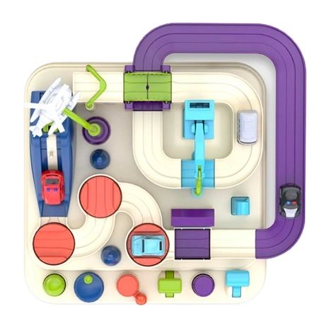 Les boutons de commande et les molettes donnent aux enfants le contrôle des plateformes élévatrices, des plateformes mobiles et du pont. Le jeu développe les capacités de planification et de prise de décision — les petits pilotes doivent réfléchir au meilleur itinéraire pour surmonter les défis.