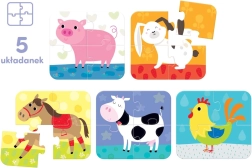 CzuCzu Puzzle J’assemble les animaux est un ensemble de cinq puzzles simples, idéal dès l’âge de deux ans. Chaque puzzle comporte 4 pièces, ce qui favorise la coordination et la pensée créative.