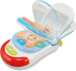 Le téléphone souriant est un jouet d’éveil qui captive les enfants pendant longtemps. Grâce à son clapet mobile, à ses mélodies joyeuses et à ses petites lumières clignotantes, il stimule l’ouïe, la vue et la motricité fine. À l’ouverture du clapet apparaît un miroir sécurisé pour faire des grimaces amusantes et découvrir son propre reflet.