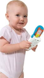 Le téléphone dispose d’un pratique système d’attache pour une suspension facile au lit à barreaux ou à la poussette. L’antenne fait office d’anneau de dentition, apportant un soulagement aux gencives lors des poussées dentaires. Les enfants adorent appuyer sur les boutons et ouvrir le clapet, ce qui entraîne naturellement la motricité fine et la coordination œil-main.
