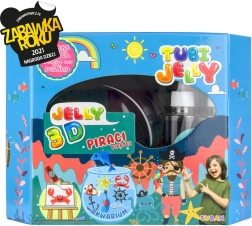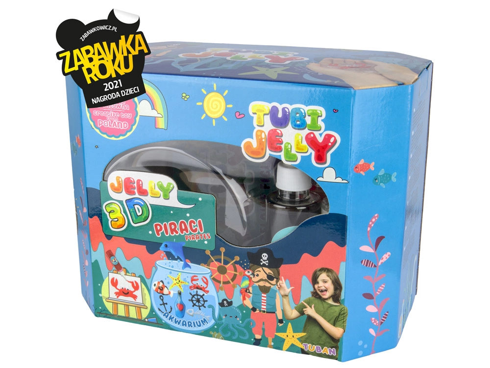 Transformez votre idée en une aventure marine 3D unique. Le kit Tubi Jelly pirates vous permet de peindre facilement des formes en gel sur un film, de les solidifier dans l’activateur, puis de les placer dans l’aquarium avec des cristaux d’eau. De l’eau tiède accélère la croissance des cristaux et votre scène de pirates prend vie en un clin d’œil.