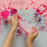 2. Si vous souhaitez rendre votre slime unique, ajoutez les paillettes fournies dans l’ensemble. Mélangez bien les ingrédients.