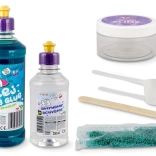 Colle PVA 500 ml, activateur 250 ml, paillettes 5 g, spatule, doseur, conteneur