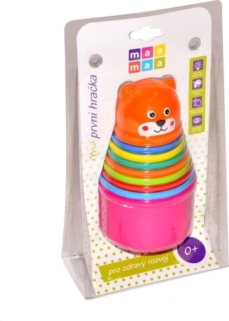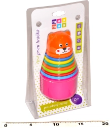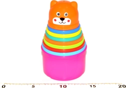 Les gobelets s’emboîtent ou s’empilent facilement pour créer une pyramide stable. Le jeu avec la tour amuse les enfants à la maison comme en déplacement, tout en soutenant leur développement psychomoteur.