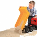 Le camion est fabriqué en plastique résistant, ce qui le rend adapté pour une utilisation en extérieur et en intérieur.