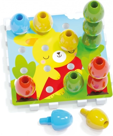 La mosaïque Jumbo Peggy est un jouet idéal pour les tout-petits. Grâce à ses composants grands et arrondis, ils sont faciles à saisir et à assembler. Les enfants peuvent réaliser d’étonnantes compositions tridimensionnelles en superposant les chevilles.