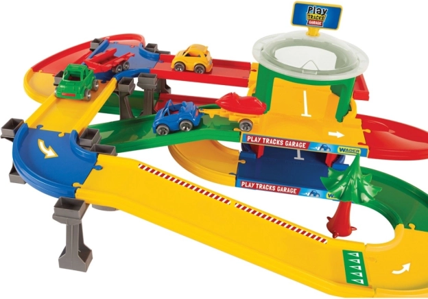 Le méga garage avec piste de la série Play Tracks Garage propose une construction innovante et légère qui se monte facilement en diverses formes de pistes. Nos systèmes de pistes mesurent jusqu'à 5,5 m et incluent un garage à deux niveaux.