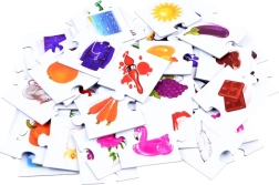 - Nous écoutons et nous assemblons – le meneur de jeu raconte une histoire en utilisant les objets représentés sur les puzzles. L’enfant doit trouver le plus vite possible la carte correspondante et gagner des points.