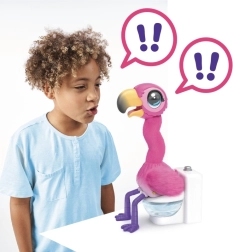Le flamant rose interactif Little Live Pets amuse les enfants en acceptant d’être nourri avec un sable Aqua spécial, il chante, danse, parle et après le repas il va aux toilettes. Il l’annonce avec la phrase anglaise « Uh, oh, I gotta go », répète les mots de son propriétaire et, grâce au sable réutilisable, l’amusement recommence encore et encore.