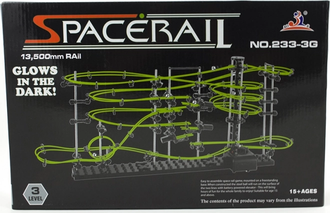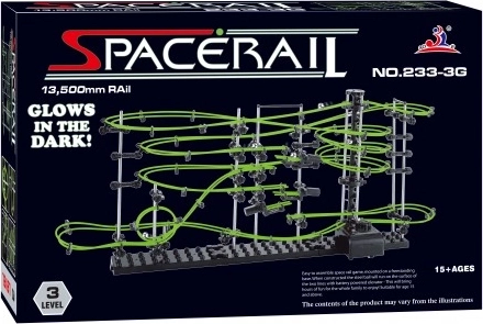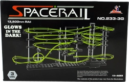 SPACERAIL Glow est un kit créatif pour les passionnés de technique, de logique et de construction. À partir de pièces en plastique et en métal et de fibres phosphorescentes, vous assemblez une piste à billes élaborée sur une base stable. Lors du montage, vous façonnez arcs, boucles et descentes et ajustez le passage idéal des billes.