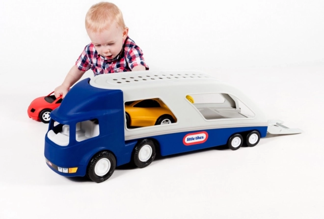 Bip bip ! Votre grand véhicule est de retour ! Cette remorque classique offrira des heures de divertissement. Deux voitures de sport tiennent dans la remorque. La rampe se déploie facilement. Le véhicule est idéal pour jouer à l’intérieur comme à l’extérieur.