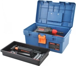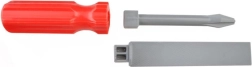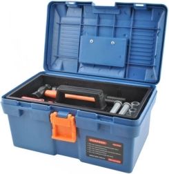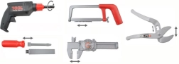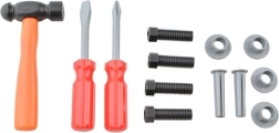 - valisette, perceuse manuelle, marteau, tournevis cruciforme, tournevis plat, vis et écrous, scie manuelle, clé réglable, clé à œil, clé à douille, clé plate, pied à coulisse, spatule, lime (embout interchangeable), niveau à bulle, équerres, pièces de liaison perforées
