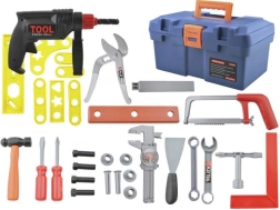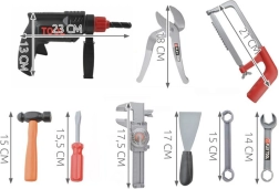 Set d’outils complet pour enfants dans une valisette rigide, pour petits bricoleurs dès 3 ans. Contient des outils en plastique réalistes comme une perceuse manuelle à foret rotatif, une scie, un marteau, des tournevis, des pinces, un jeu de clés, un pied à coulisse et d’autres accessoires. Le set développe la motricité fine, la créativité et apprend la responsabilité par le jeu. La valisette garde tout bien organisé à la maison comme en déplacement.