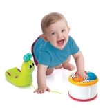 Un escargot ludique qui se transforme facilement en trieur de formes et tambour. Ce jouet coloré stimule les sens et développe les compétences manuelles de votre enfant.