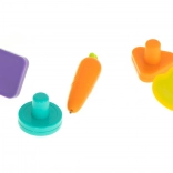 Les éléments interactifs proposent des sons d’animaux, des sons de moyens de transport, des sons de la maison et des mélodies entraînantes. Le jouet dispose de 2 niveaux de volume et d’une option pour couper le son. Le stylet en forme de carotte émet un effet de craquement lorsqu’on l’insère dans la “bouche” du petit cheval. Les bords de la tablette sont ornés de lettres et chiffres en relief – idéal pour une première découverte des formes.