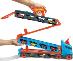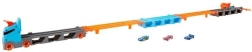 Transforme le camion en un clin d’œil en une véritable piste de course. Le transporteur abrite jusqu’à 20 petites voitures derrière des fenêtres transparentes pour garder un œil sur ta collection. En tirant sur la poignée, la remorque se déploie en une piste à deux voies de 1,8 m, tandis que la cabine devient une station de double lancement pour des départs équitables.