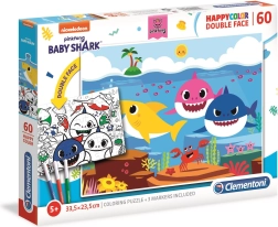 Découvrez un jeu créatif qui occupera les enfants pendant des heures. Le puzzle recto-verso BABY SHARK propose un motif coloré des personnages marins préférés d’un côté et un coloriage en noir et blanc de l’autre. Ainsi, les enfants s’exercent non seulement à l’assemblage, mais peuvent aussi compléter l’image selon leur imagination.