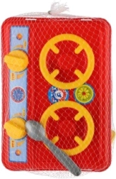 Ce set coloré pour petits chefs réunit tout le nécessaire pour cuisiner et servir en s’amusant. La cuisinière compacte en plastique avec boutons de commande est complétée par une bouilloire rouge et quatre tasses avec soucoupe et cuillères – idéal pour les goûters et thés d’enfants.
