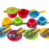 Ce set coloré de vaisselle pour cuisine enfant est idéal pour jouer à cuisiner, servir et partager des « goûters ». Le plastique robuste et les formes arrondies sont adaptés aux enfants, et les couleurs vives stimulent l’imagination et la coopération.