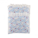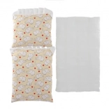 Petit oreiller 23 × 28 cm, matelas 50 × 30 cm, couette 35 × 28 cm – s’adaptent parfaitement aux poussettes et aux lits pour poupées.