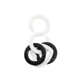 Les anneaux en silicone interconnectables avec relief massent les gencives, stimulent le toucher et facilitent la prise en main. Les crochets en S fixent les jouets à la poussette ou au siège auto.