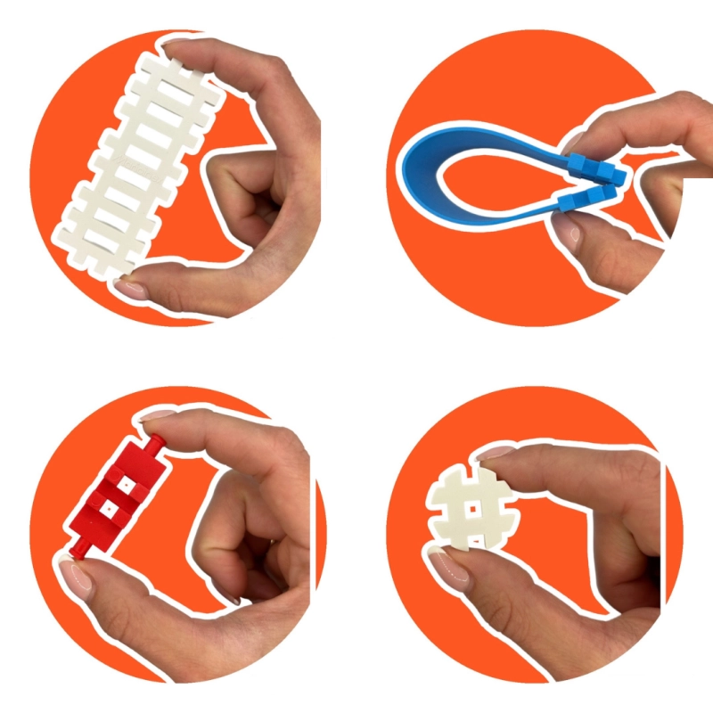 Le matériau sûr, agréable et légèrement flexible est confortable au toucher et résiste au jeu quotidien. Le set est rangé dans une boîte en carton rigide, contient un guide pour bien démarrer ainsi qu’un sachet spécial pour le lavage au lave-vaisselle afin que les pièces restent toujours propres. Parfait pour des moments de jeu en solo ou partagés.