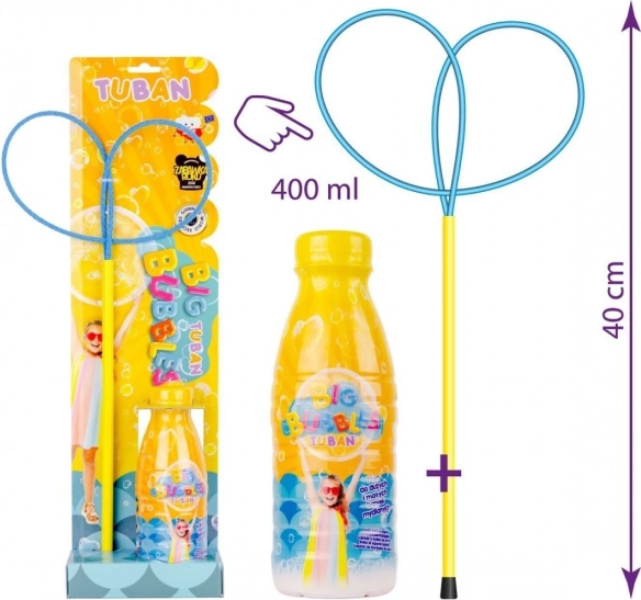 L'ensemble comprend non seulement un cerceau d'une hauteur de 40 cm avec une poignée en plastique, mais aussi un matériau spécial qui absorbe le liquide pour des bulles encore meilleures.