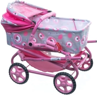 Offrez à vos enfants le plaisir de jouer avec cette poussette pour poupées stylée. Grâce à un cadre métallique léger et des roues plus grandes, elle assure une manipulation facile et une conduite fluide. La poussette est équipée d'une nacelle couverte avec tablier, d'un panier et d'un sac à langer pratique.