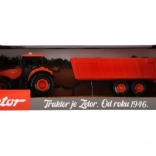 Découvrez l'univers des machines agricoles avec le modèle de tracteur Zetor, conçu pour offrir un maximum de plaisir grâce à ses fonctionnalités réalistes. Ce tracteur non seulement ressemble à un vrai, mais il émet aussi des sons réels et possède des lumières fonctionnelles. La remorque peut être facilement détachée, permettant un jeu varié et le développement de l'imagination.