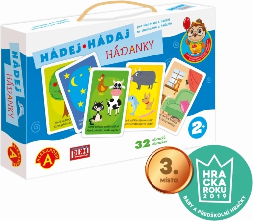 Jeu éducatif amusant pour les tout-petits dès 2 ans, qui développe à l’aide de devinettes et de quiz les connaissances de base, la pensée logique et la vivacité d’esprit. Fait partie de la série Chouette petite tête maligne, récompensée JOUET DE L’ANNÉE 2019. Emballé dans une boîte rigide avec poignée pour un transport facile et contient 16 grandes cartes colorées (32 devinettes illustrées) avec notice en tchèque et en slovaque.