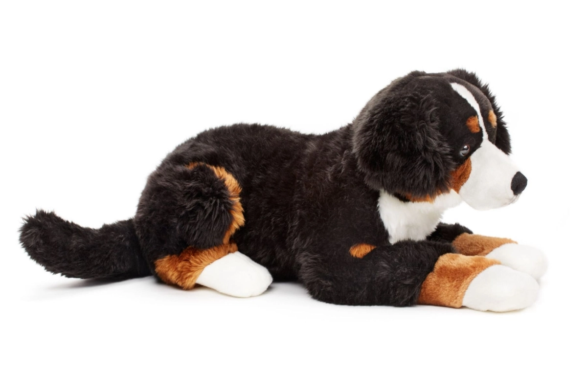Cette peluche toute douce, inspirée de la race du bouvier bernois, séduit par sa robe tricolore authentique et son expression charmante. Grâce à sa longueur généreuse d’environ 65 cm (sans la queue), elle est parfaite pour les câlins, la déco de la chambre et comme compagnon de voyage.
