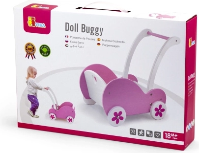 La poussette Viga est fabriquée en hêtre de haute qualité, garantissant stabilité et sécurité pendant le jeu.
