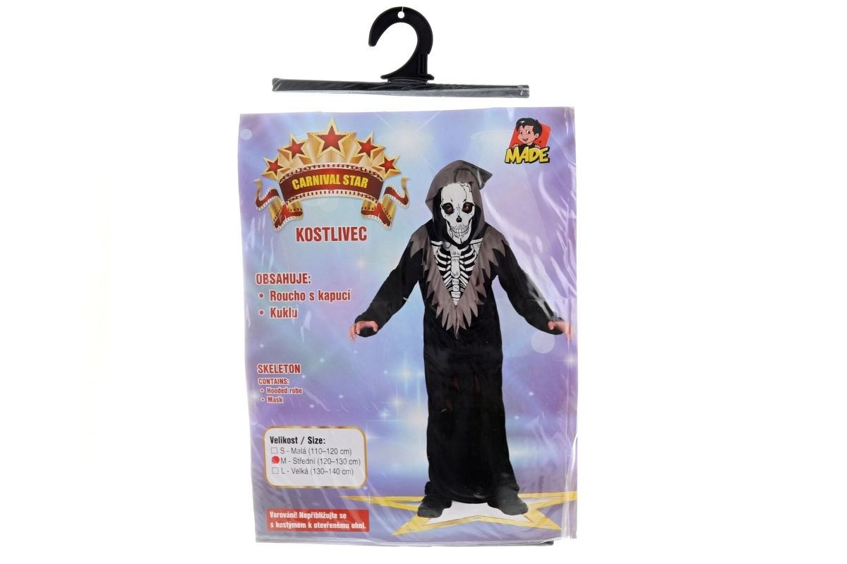 Un costume effrayant et amusant pour les jeunes fans d’Halloween et de fêtes costumées – costume de squelette pour enfant en taille 120–130 cm. Comprend une robe à capuche et une cagoule, idéal pour le carnaval, les fêtes et les spectacles scolaires. Facile à enfiler, confortable et prêt pour des heures de plaisir.