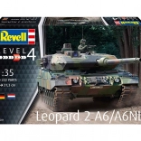 Maquette plastique réaliste LEOPARD 2A6/A6NL pour maquettistes expérimentés comme débutants. Char de combat principal allemand de 3e génération avec un niveau de détail élevé par Revell. Le kit ne comprend ni peintures ni colle ; les teintes recommandées sont indiquées ci‑dessous pour un rendu authentique.