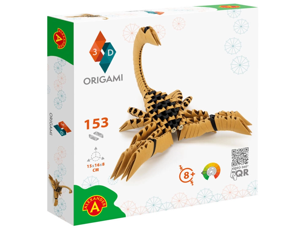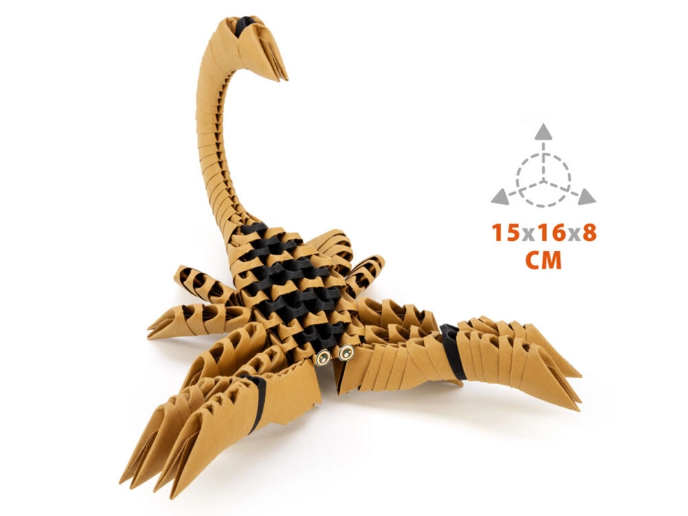 Le Scorpion en origami 3D de la marque Alexander est une activité créative ludique et apaisante pour enfants et adultes. Les pièces ont une forme brevetée avec ligne de pli marquée, ce qui permet de créer le module de base en trois gestes simples, puis de les clipser sans colle. Le modèle fini a un aspect décoratif et deviendra un ornement original pour la chambre.