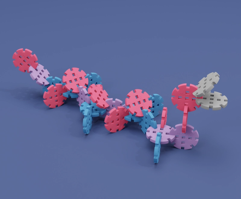 Découvrez un kit créatif avec 200 roues flexibles permettant aux enfants de créer des mécanismes mobiles, des véhicules et des modèles 3D. Inclus, un cahier d’exercices pour développer la logique et le calcul. Matière souple recyclée, 10 couleurs harmonieuses, bords arrondis sûrs et compatibilité avec la série Mini Waffle font de ce set un choix idéal pour s’amuser intelligemment tout en apprenant.