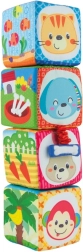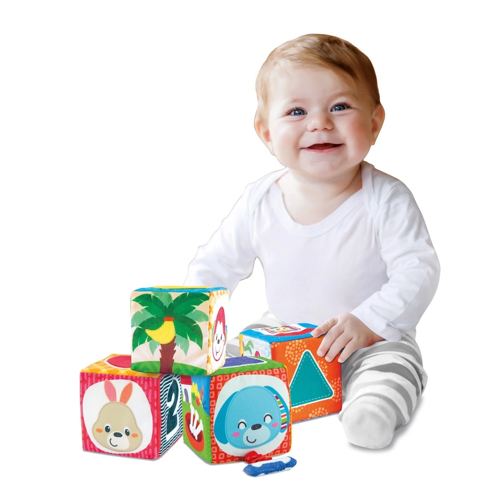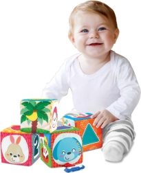 Ce set de cubes souples est conçu pour un jeu sûr et stimulant dès le plus jeune âge. Grâce à la diversité des textures et aux contrastes de couleurs, il favorise le développement des sens, la coordination œil-main et les premières compétences cognitives. Les joyeuses illustrations d’animaux, les chiffres et les formes géométriques encouragent naturellement l’exploration.