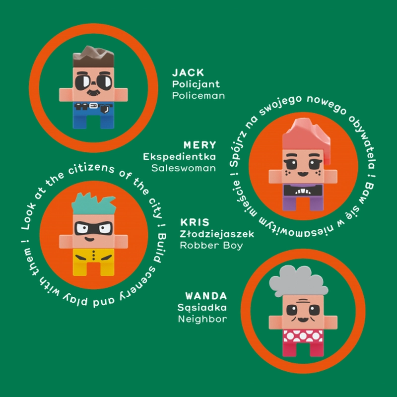 Jouez ensemble, développez les aptitudes spatiales ainsi que l’imagination liée à l’invention et au récit d’histoires. Stimulez la créativité des enfants et laissez-vous emporter par la puissance sans limites de la fantaisie. Qui sait, peut-être que le carrefour se transformera en gratte-ciel ? Dans notre ville, la seule limite est votre imagination !