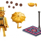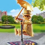 Ce performeur de rue, vêtu d’un costume doré accrocheur, reste immobile pour, au moment opportun, divertir son public d’un geste de son parasol doré. Le set compact Playmobil Special Plus séduit par ses excellents accessoires et offre de nombreux scénarios de jeu pour un amusement quotidien.