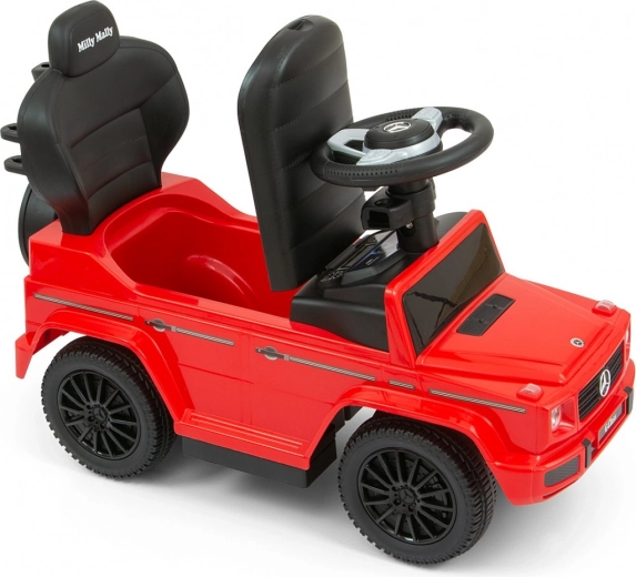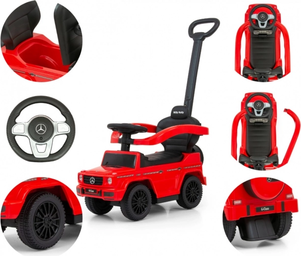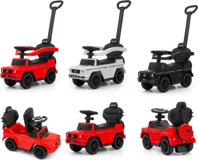 Le véhicule MERCEDES G350d sous licence Mercedes est un produit conçu avec une grande attention aux moindres détails et à la qualité des matériaux utilisés. Grâce au caractère multifonctionnel du jouet, votre enfant ne s’en lassera pas rapidement et développera ses compétences manuelles et ses capacités motrices en jouant. Un autre avantage est le volant interactif, qui rend le jeu encore plus attrayant. Le produit dispose de roues directrices commandées par le volant ou la poignée, assurant une conduite confortable lors des promenades. Il est très facile à monter et à démonter, stable et sûr. Les différents éléments (barrières et poignée) peuvent être détachés, de sorte que le véhicule « grandit » avec votre enfant.
