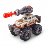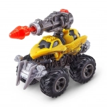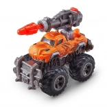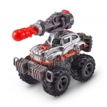 Truck facile à assembler avec pneus massifs, carrosserie détaillée et lanceur fonctionnel pour des batailles et cascades.