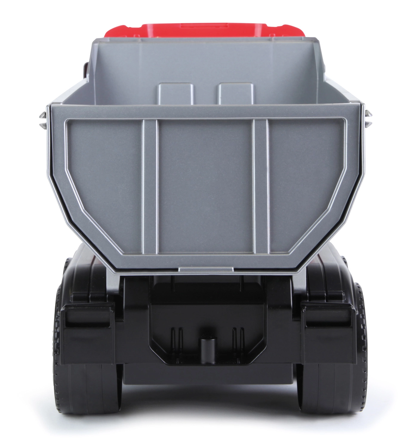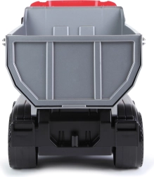 Le modèle, dans une combinaison moderne rouge-noir, est équipé d’axes en acier galvanisé de 6 mm de diamètre pour une résistance maximale. La benne pratique est basculante et peut être verrouillée en position fermée, pour transporter facilement sable, cailloux et autres charges.
