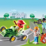 Avec l’Opération de sauvetage Playmobil, vivez des moments dramatiques lors d’une course de karting. Le conducteur perd soudain le contrôle de son véhicule, mais le docteur Mikey est immédiatement sur place pour apporter l’aide nécessaire. Tout se termine bien, garantissant des heures de jeu scénarisé.