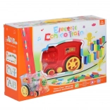 Cette locomotive colorée avec distributeur de pièces pose elle‑même les dominos à des distances fixes et signale chaque pose par un son. Les enfants peuvent facilement choisir la direction de marche en tournant la cheminée, créant ainsi des parcours et motifs variés. Les couleurs vives et le design attrayant retiennent l’attention et motivent à jouer longtemps.
